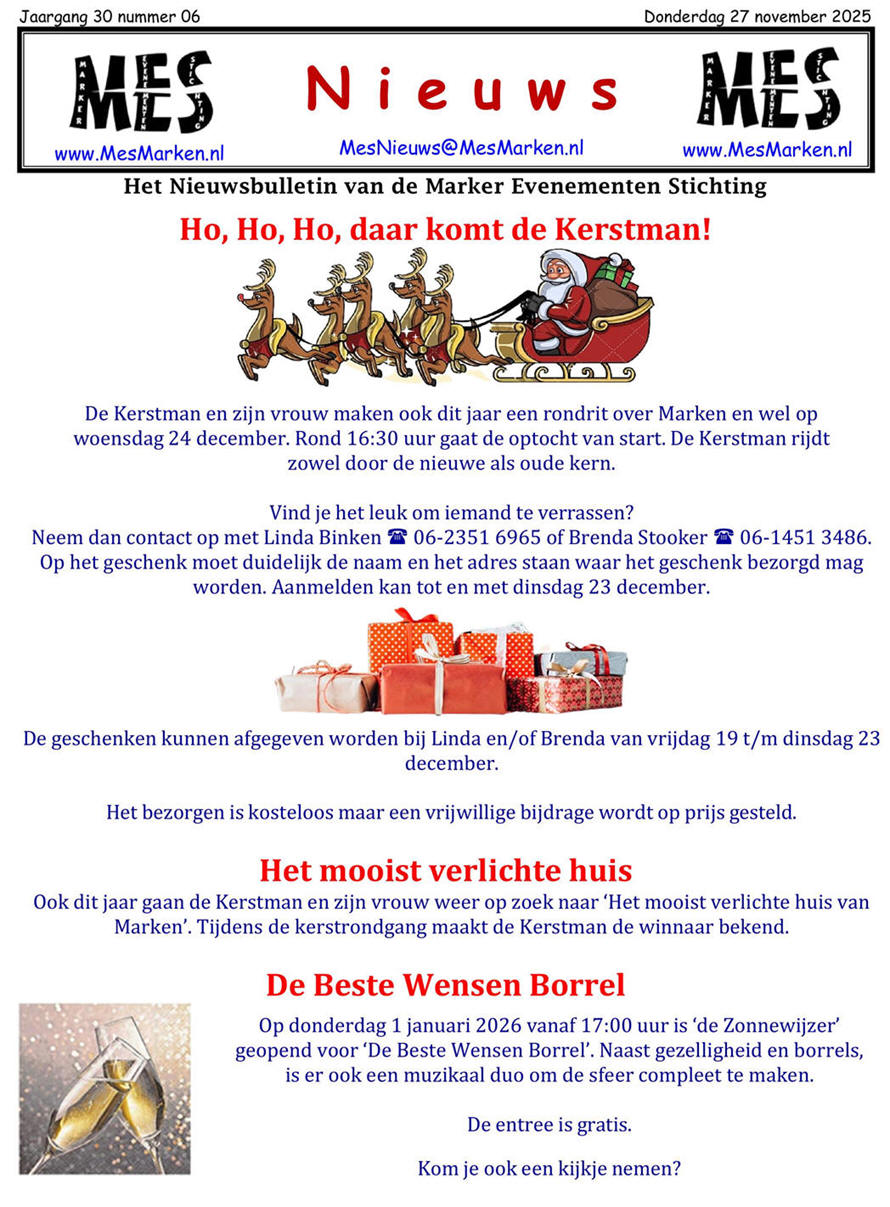 Het bestuur van de Marker Evenementen Stichting en de redactie van www.MesMarken.nl & www.MarkerNieuws.com wensen U een Gelukkig Nieuwjaar. |